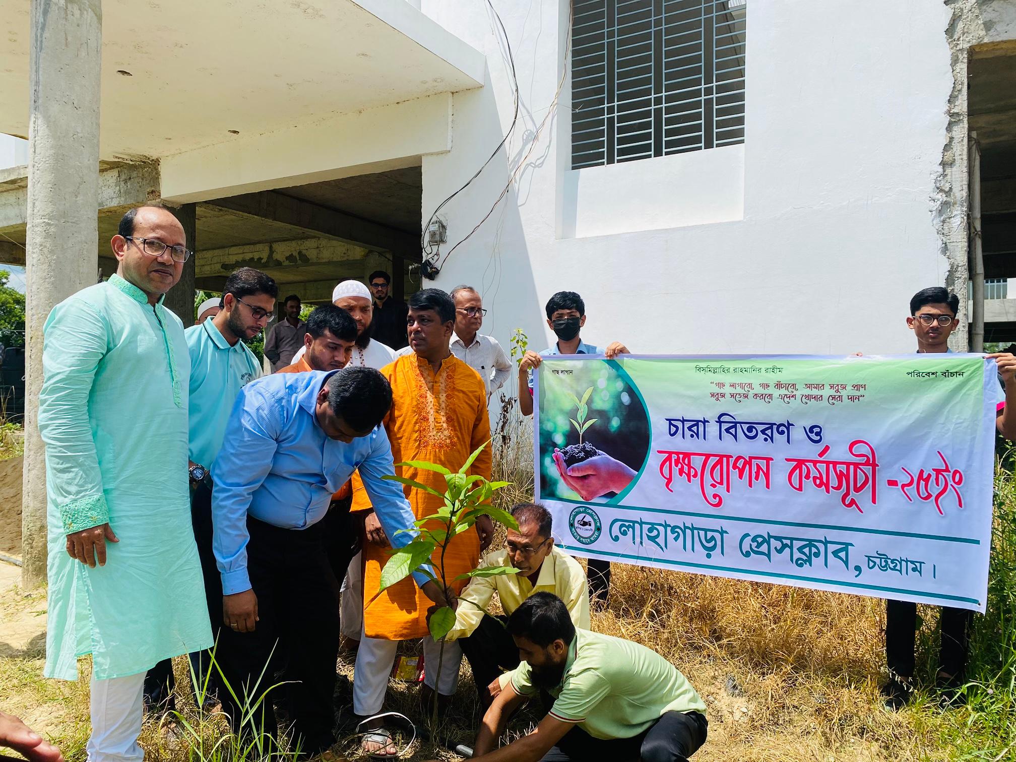 "গাছ লাগাবে, গাছ বাঁচাবো, আমার সবুজ প্রাণ সবুজ সতেজ করবো খোদার সেবা দান "এই স্লোগানকে সামনে রেখে লোহাগাড়ার কর্মরত সাংবাদিকদের প্রিয় সংগঠন লোহাগাড়া প্রেসক্লাবের উদ্যোগে বিভিন্ন প্রজাতির বনজ,ফলজ,ফুলজ ১০০০ হাজারের অধিক গাছের চারা রোপন ও শিক্ষার্থীদের মাঝে বিতরণ লোহাগাড়া প্রেসক্লাবে সদস্যরা।