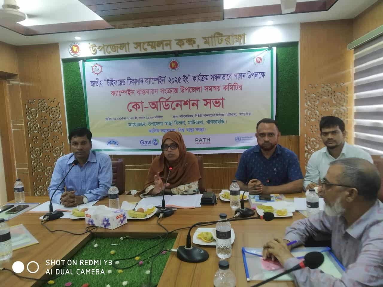 খাগড়াছড়ি জেলার মাটিরাঙ্গায় টাইফয়েড টিকাদান ক্যাম্পেইন ২০২৫ উপলক্ষ্যে দিনব্যাপি অ্যাডভোকেসি সভা সম্পন্ন হয়েছে।