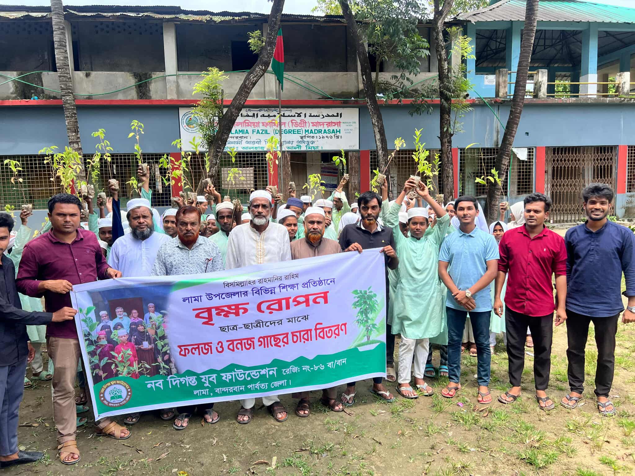লামায় নব দিগন্ত যুব ফাউন্ডেশনের উদ্যোগে চারা বিতরণ ও বৃক্ষরোপণ কর্মসূচি