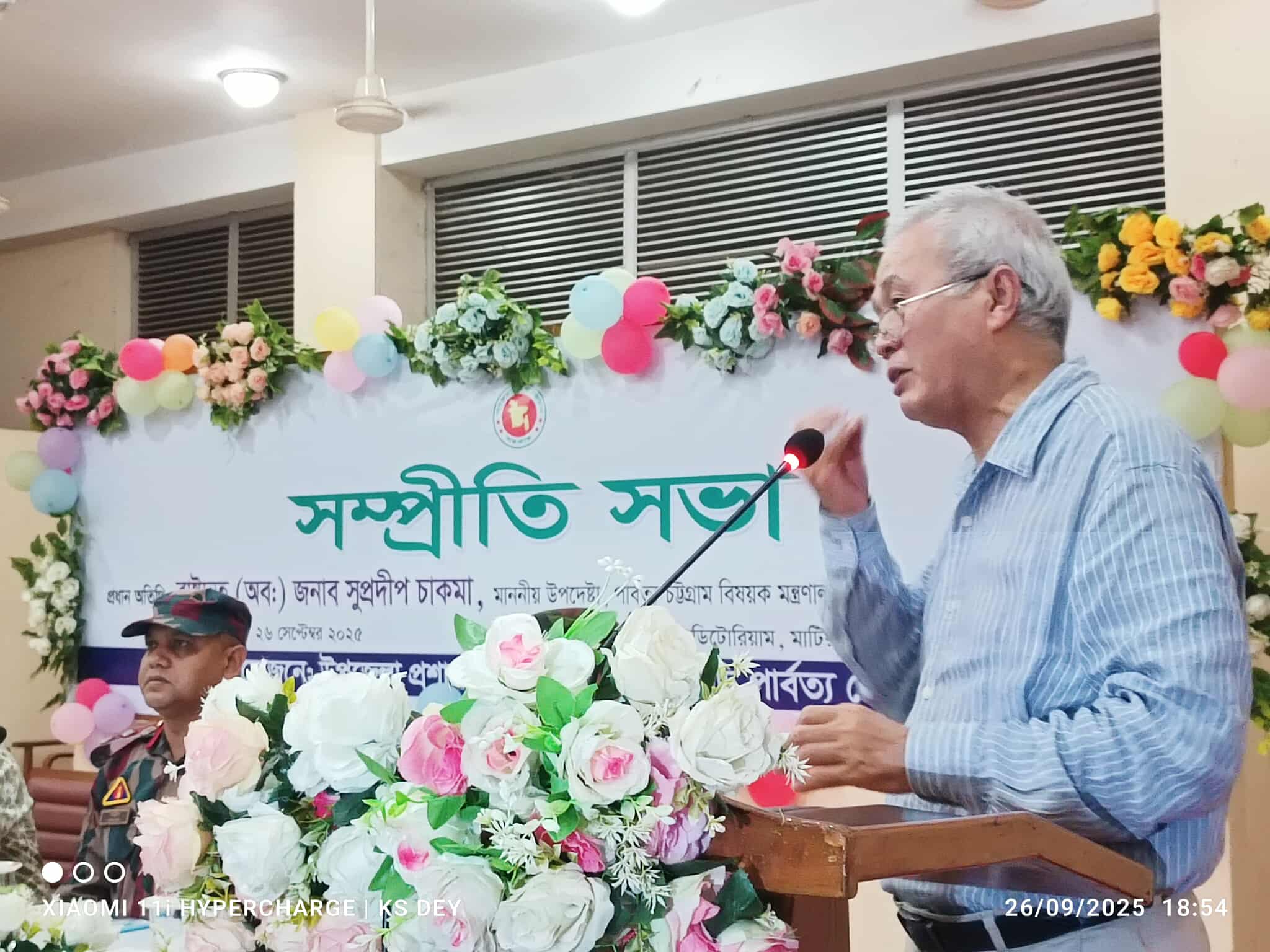 সম্প্রীতির বন্ধনে আমরা ঐক্যবদ্ধ হই” মাটিরাঙায় সম্প্রীতি সভায় উপদেষ্টা সুপ্রদীপ চাকমার আহ্বান।
