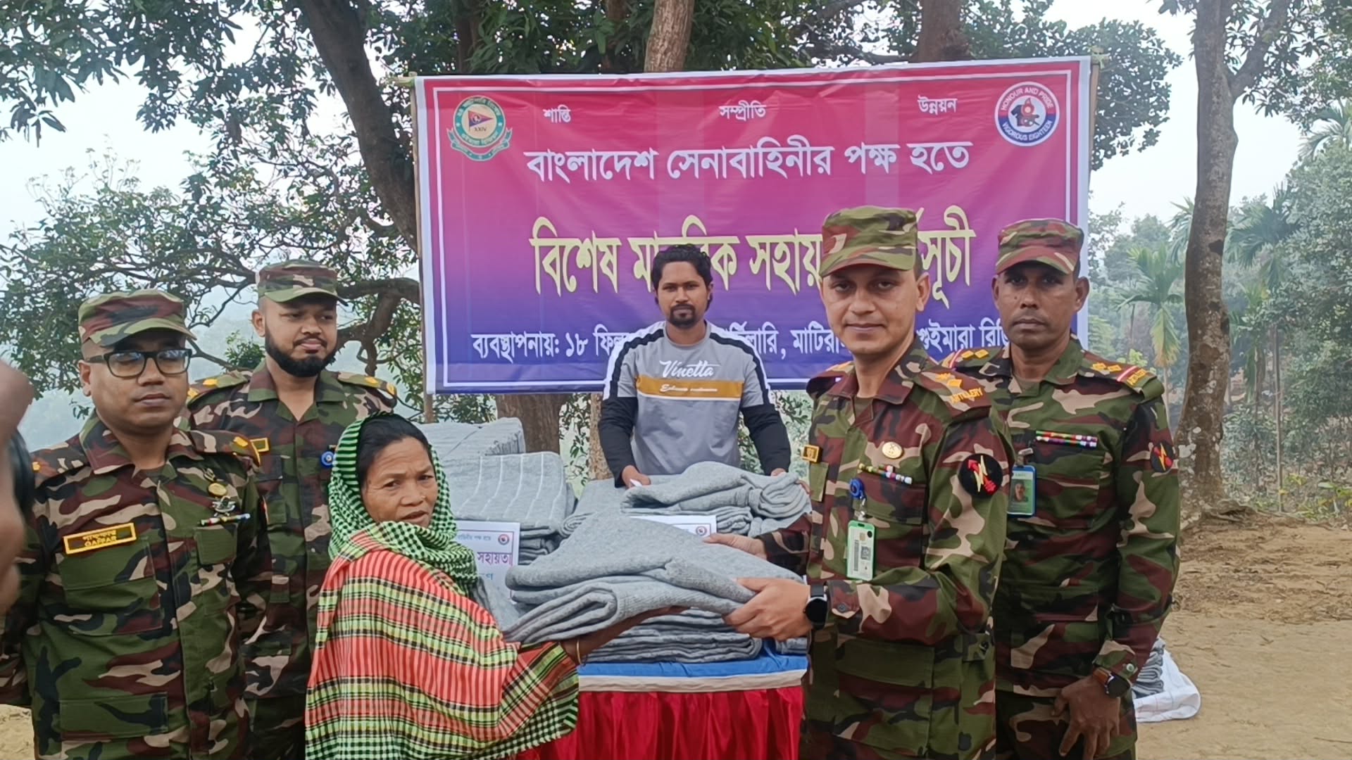 বাংলাদেশ সেনাবাহিনীর ১৮ ফিল্ড রেজিমেন্ট আর্টিলারি'র মাটিরাঙ্গা জোনের নিয়মিত আর্থ-সামাজিক ও উন্নয়ন কর্মসূচীর আওতায় মাটিরাঙ্গার অত্যন্ত দূর্গম এলাকার জনসাধারণের মাঝে বিনামূল্যে চিকিৎসা সেবা প্রদান ও শীতবস্ত্র বিতরণ করা হয়েছে।